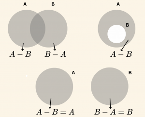 A \cup A’ = E, \quad A \cup Ø = A,, \quad A \cup E = E\\