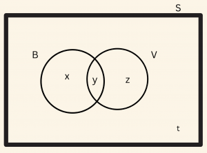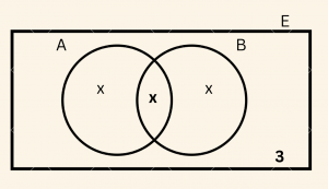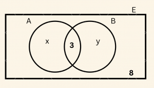 \[ [s(A \cup B ) – s(A \cap B) ] = s(A’ \cap B’) = 8 \quad \text{ve } \; s(A \cap B )= 3 \] ise \( s(E) \) kaçtır?