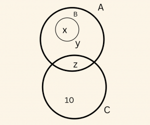 \(x, y, z \) ve \(t \) içinde bulundukları kümelerin eleman sayılarını göstermek üzere,