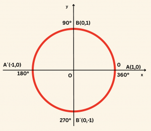 7)  \(0^\circ, 90^\circ, 180^\circ\) ve \(270^\circ\)’lik açıların trigonometrik oranları: