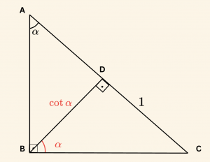 \cot \alpha = \frac{|BD|}{|DC|} = \frac{|BD|}{1}