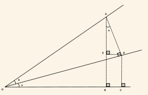 |AE| = |OA| \cdot \sin b \cdot \cos a