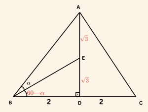\tan (60^\circ – \alpha) = \frac{|ED|}{|BD|} = \frac{\sqrt{3}}{2}