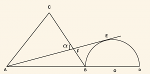 Yandaki şekilde O merkezli yarım çemberle ABC eşkenar üçgeni verilmiştir.