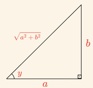 \[\begin{aligned}\tan \alpha = \tan (b \; – \; a) &= \frac{\tan b \; – \; \tan a}{1 + \tan b \cdot \tan a}\\ \\ &= \frac{2 \; – \; \frac{1}{2}}{1 + 2 \cdot \frac{1}{2}} \\ \\ &= \frac{\frac{3}{2}}{2} \\ \\ &= \frac{3}{4} \end{aligned}\]