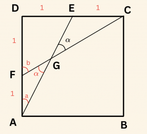 \tan b = \frac{|DC|}{|DF|} = \frac{2}{1} = 2