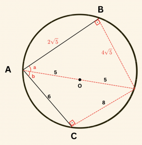 \(R = 5 \) birim seçilirse çap uzunluğu \( |AA’| = 10 \) birim, \( |AB| = 2\sqrt{5} \) birim ve \( |AC| = 6 \) birim olur.