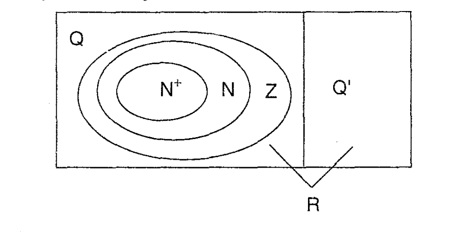 $$Z^+ = N^+\subset N \subset Z \subset Q \subset R \quad ve \quad Q’ \subset R $$
