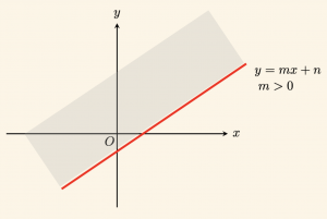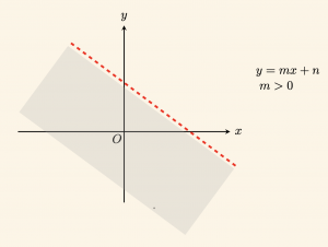 1) Şekildeki taralı bölge, \[ y \geq mx + n \quad m > 0 \quad \text{eşitsizliğinin grafiğidir. } \]