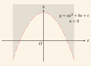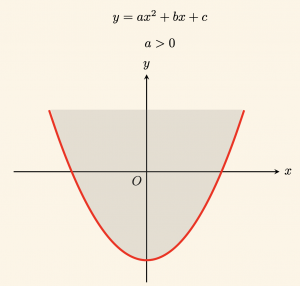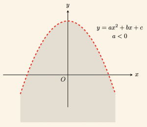2) Şekildeki taralı düzlem \( y > ax^2 + bx + c \) eşitsizliğinin grafiğidir. Burada eşitlik olmadığından \( y = ax^2 + bx + c \) parabolü üzerindeki noktalar eşitsizliği sağlamaz.