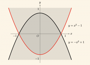 -y \geq x^2 – 1 \Rightarrow y \leq -x^2 + 1 \;\; \text{olur }