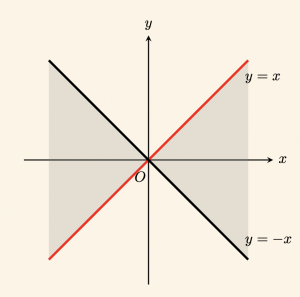 \( |y| \leq |x| \) eşitsizliğinin grafiğini çizelim.