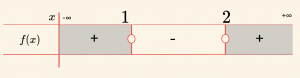 \[ \Rightarrow f(x) = \frac{x^2 + x – 6 }{x-1 } > 0 \Rightarrow x_1 = -3, \; x_2 = 2 \]