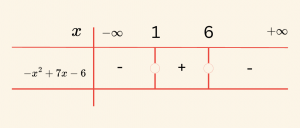\(f(x) = -x^2 + 7x – 6 \) üç terimlisinin işaretini inceleyelim.