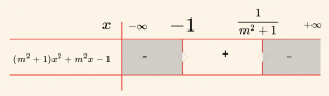 \( (m^2 + 1)x^2 + m^2 x – 1 < 0 \) eşitsizliğinin çözüm kümesini bulalım.