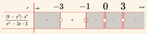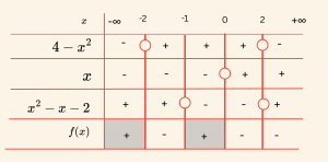 \[ f(x) = \frac{(4 \;- x^2)x}{x^2 \;- x \;- 2} < 0 \] eşitsizliğinin çözüm kümesini bulalım.