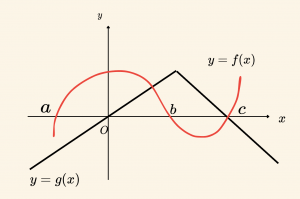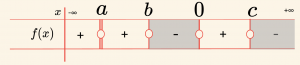 \[f(x) = 0 \Rightarrow x = a, \quad x = b, \quad x = c \]