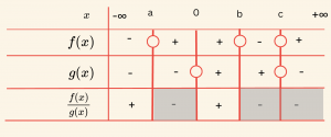 Yukarıdaki şekle göre \[\frac{f(x)}{g(x)} \geq 0 \] eşitsizliğinin çözüm kümesini bulalım.