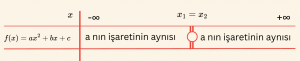 x \ne -\frac{b}{2a} \text{ için } f(x) = ax^2 + bx + c \text{ ifadesinin işareti, } a\text{’nın işaretiyle aynıdır.}
