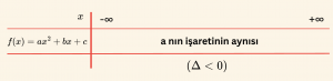 \( \Delta < 0 \) ve \( a > 0 \) ise, \( \forall x \in \mathbb{R} \) için (daima) \( f(x) = ax^2 + bx + c > 0, \)