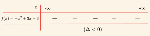 \( -x^2 + 3x- 3 = 0 \Rightarrow \Delta = -3 < 0 \) ve \( a = -1 < 0 \) olduğundan