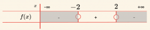 \[4 – x^2 = 0 \Rightarrow x = \pm2 \quad (a = -1 < 0) \]