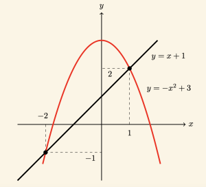 \( y = -x^2 + 3 \) parabolü ile \( y = x + 1 \) doğrusunun birbirine göre durumunu inceleyelim.