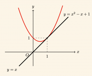 \( y = x^2 – x + 1 \) parabolü ile \( y = x \) doğrusunun birbirine göre durumunu inceleyelim.