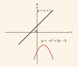 \( y = -x^2 + 2x – 3 \) parabolü ile \( y = x + 1 \) doğrusunun birbirine göre durumunu inceleyelim.